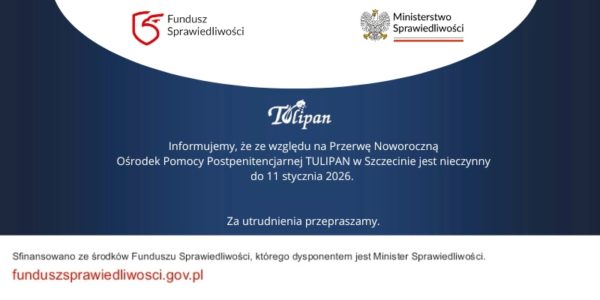 Przerwa w funkcjonowaniu Ośrodka Pomocy Postpenitencjarnej TULIPAN w Szczecinie