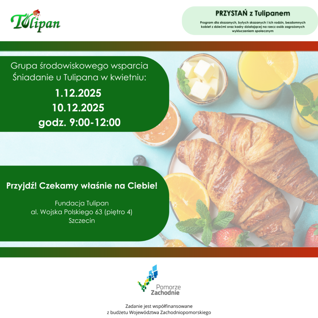 Spotykamy się 1 i 10 grudnia w naszej „Przystani z Tulipanem”, by razem rozpocząć dzień z dobrą energią, spokojem i wzajemnym wsparciem.